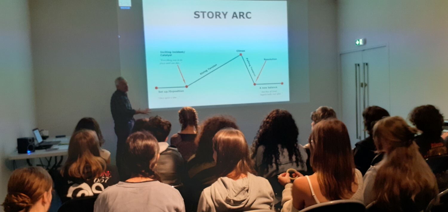 Après avoir visionné le matin le film dramatique Nowhere Special écrit, produit et dirigé par le cinéaste Uberto Pasolini dont l'action se déroule en Irlande du Nord, les élèves ont participé l'après-midi à l'atelier 'Write a Scenario' mené par un cinéaste professionnel anglophone. Une réflexion initiale s'est alors engagée sur la technique classiquement employée par un cinéaste pour rendre son scénario intéressant et efficace aux yeux du spectateur, rélexion suivie par une mise en pratique de la part des élèves qui ont pu créer leur propre scénario original dans la langue de Shakespeare et le présenter au reste du groupe.